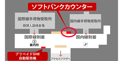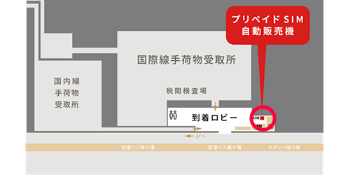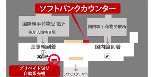 Below is a map showing where SIM cards can be purchased at Central Japan International Airport. Please refer to it.